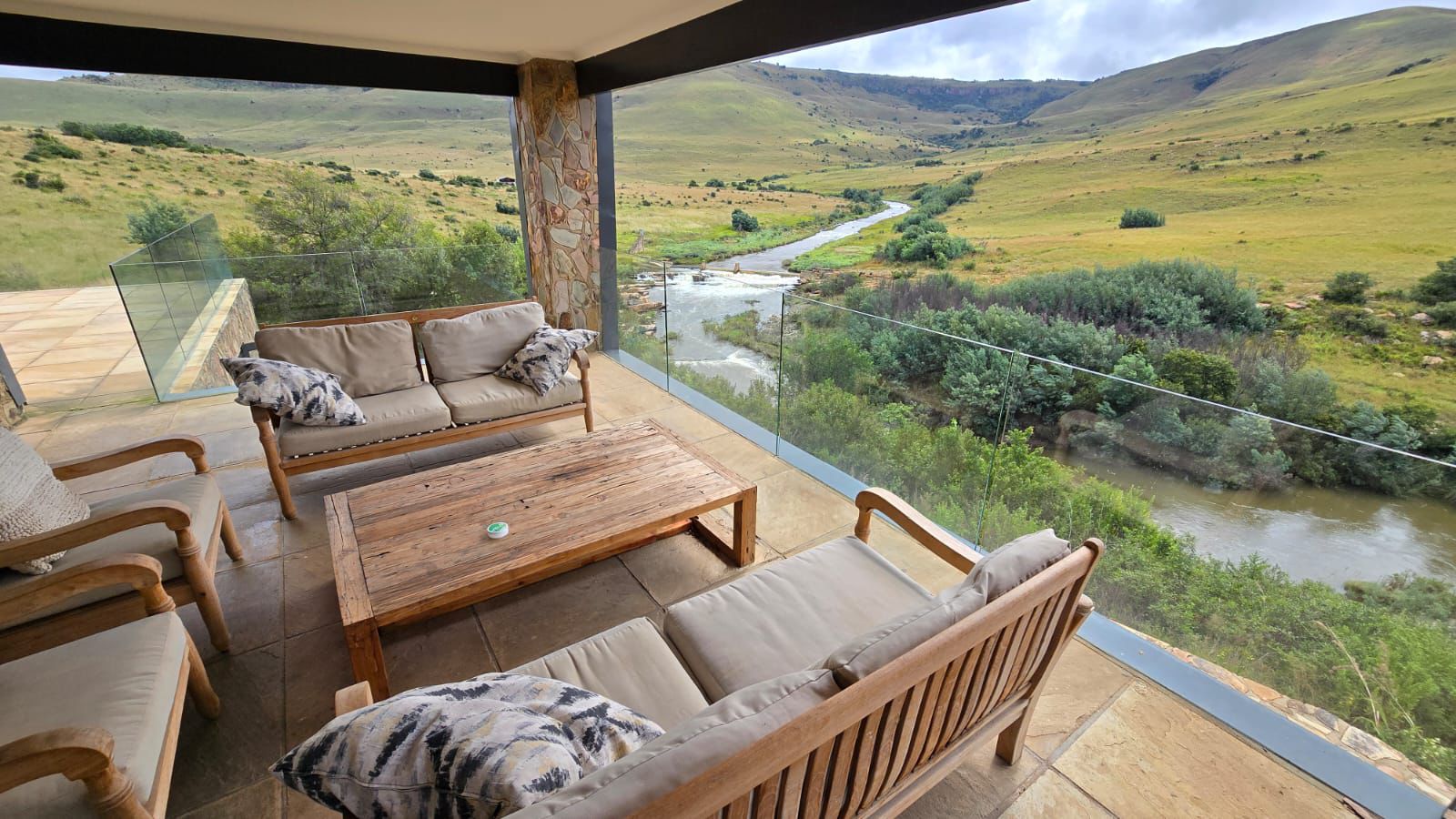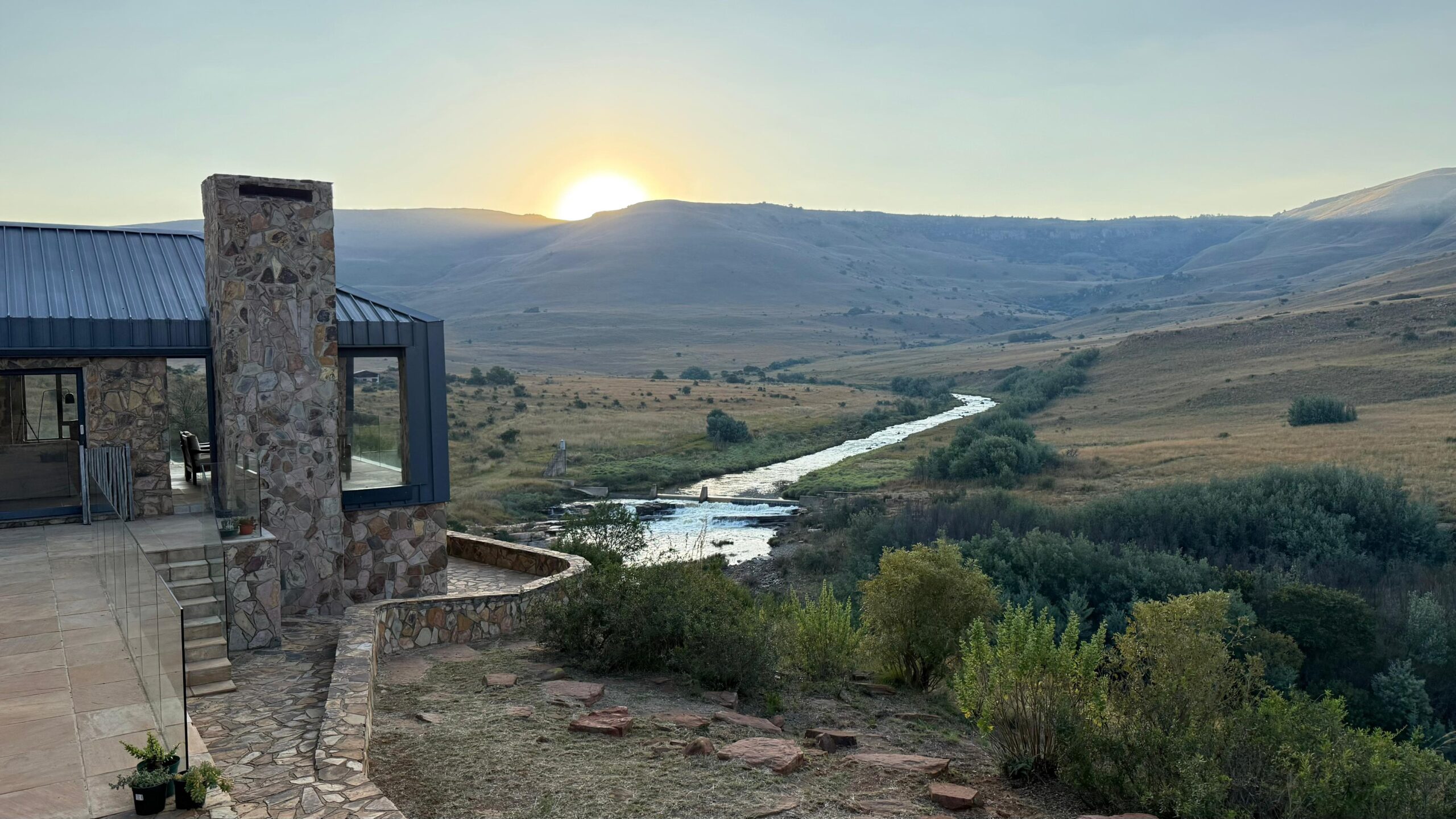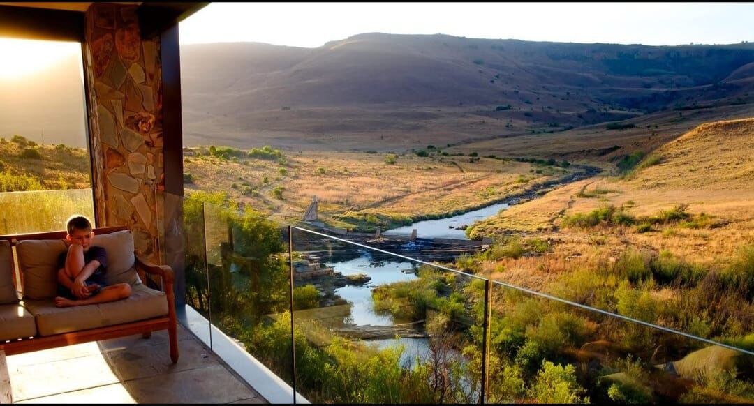 Positioned on the top of a gorge, this luxury accommodation offers spectacular 360-degree views of the Komati River and the northern Drakensberg mountains, and is washed in the sound of the water rushing over the weir below.